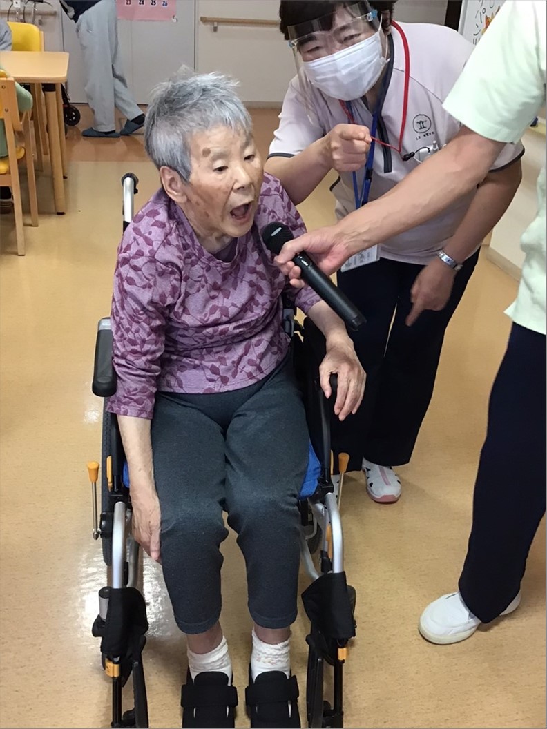 ご入居者様はカラオケで歌の練習です🎵