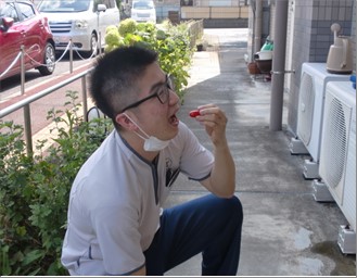 皆様に収穫していただく前に職員による味見・・・