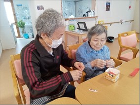 ご入居者様と一緒にこつこつ作ってきた七夕飾りがあちこちに飾られ、「きれいだね。」「七夕だねえ。」など話す声が聞かれていました。