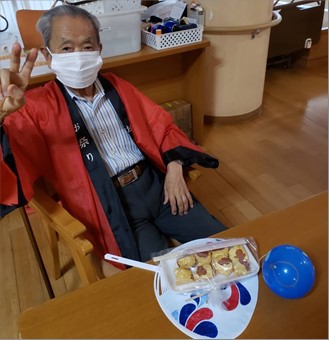 お祭りの屋台で食べたいものはたくさんありますが、今年は職員オリジナルのたこ焼きを制作しました。