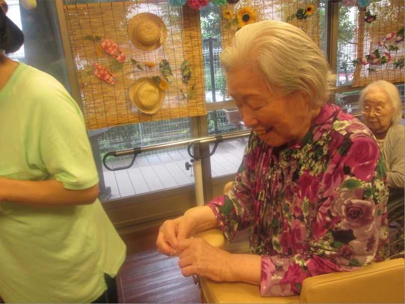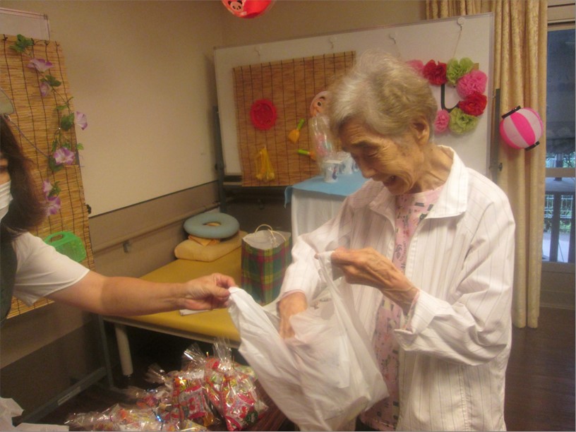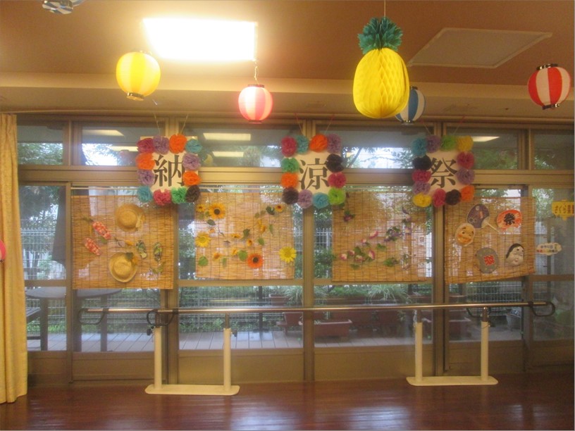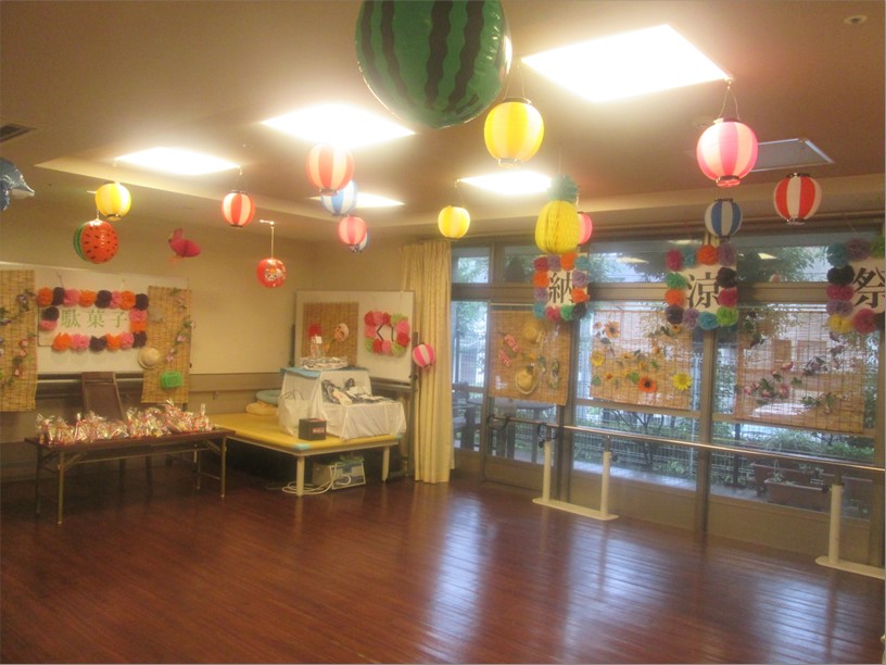 『ル・レーヴ南浦和さくら館』では、毎年納涼祭を大々的に行ってご家族様と共に楽しんでいただいていましたが、今年はご入居者様だけの参加でミニ納涼祭を開催しました。