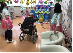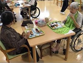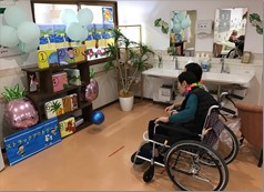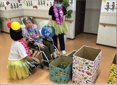 ラウンジに設置された「射的」や「輪投げ」「ストラックアウトゲーム」など、各種ゲームを職員と一緒に楽しんで頂き、素敵な笑顔が見られております。