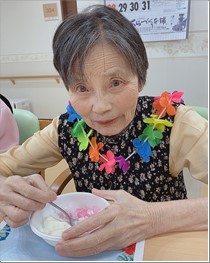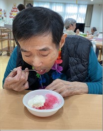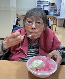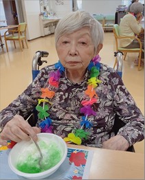 「チョコバナナ」、おやつには「かき氷onアイス」とお祭り感満載で、皆さまどれも美味しいと、とても喜ばれておりました。
