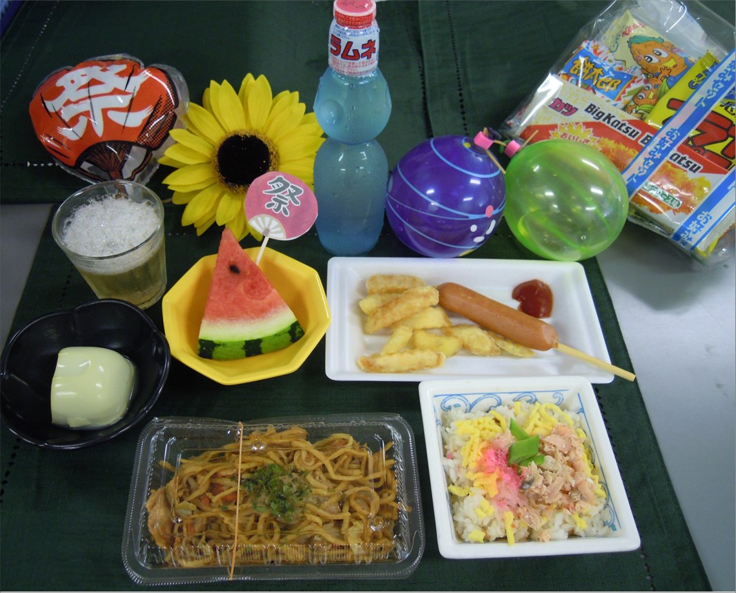 午前のゲーム&盆踊り大会に引き続き昼食は屋台食!