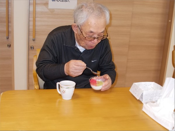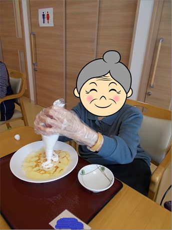 3時のおやつで召し上がっていただくと「甘くておいしい」「もっと食べたい」と仰るご入居者様が相次ぎ、あっという間にクレープはお腹の中におさまりました。