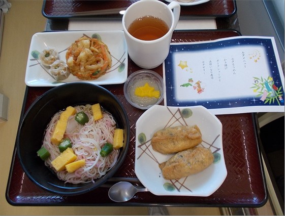 スミール石山では、7月7日の昼食に七夕にちなんだ「七夕そうめん」と「いなりずし」が毎年提供されており、恒例となっております。