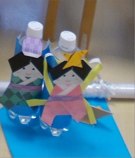 写真にありますように、「織姫・彦星の糸巻ゲーム」は2人1組となって、織姫・彦星に見立てた人形をボードに乗せ、ボードに取り付けた糸を一緒に巻いていくゲームです。