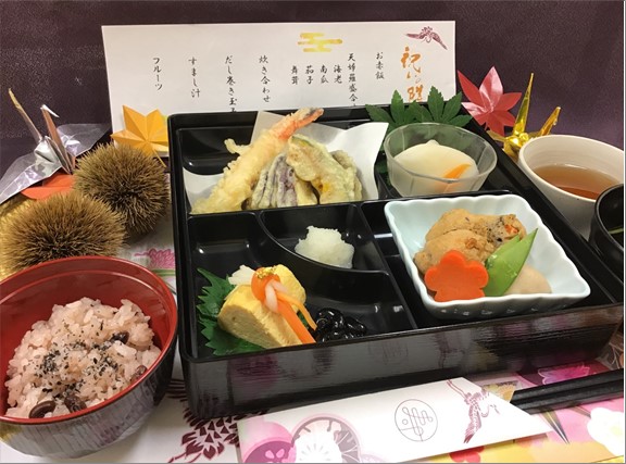 本日のメニューは、お祝いと言えばのお赤飯!そして、豪華な天ぷらの盛り合わせ。