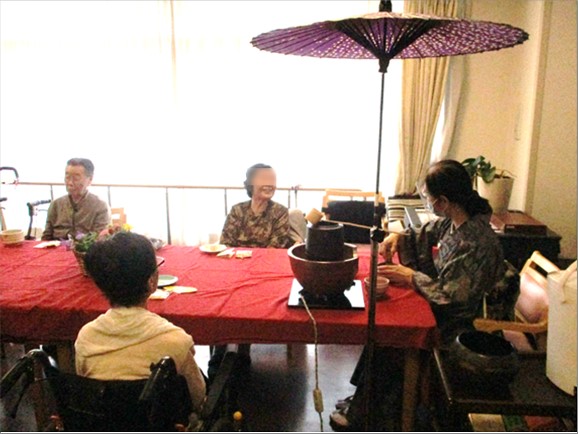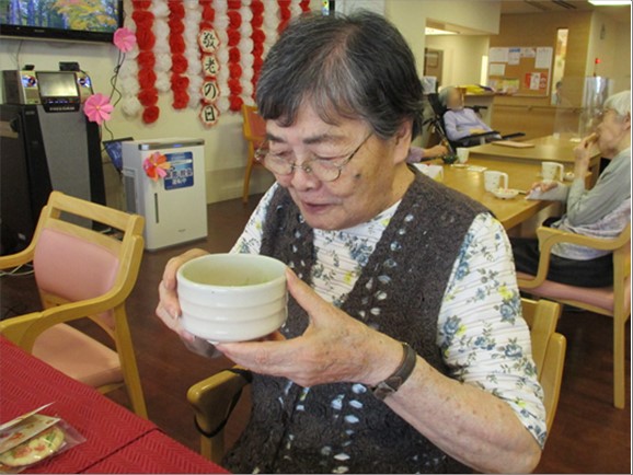 ご入居者様からは、「美味しいわ~」「私も昔お茶を点ててたのよ。すごく美味しくてもう一杯頂きたいくらい」と喜びの声が聞かれました。