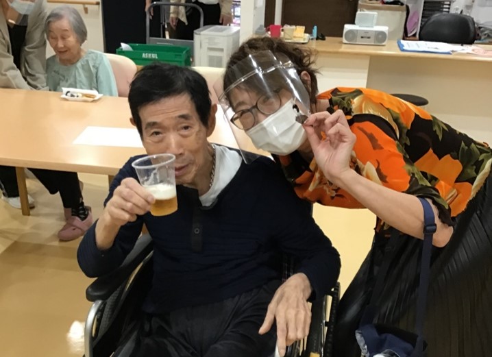 ミラーボールが回り昭和歌謡曲が流れ始め、ムーディーな雰囲気が出たところで、ある男性入居者様から「昔はこんな雰囲気の所でよく遊んだね~」なんてお話も聞かれました。