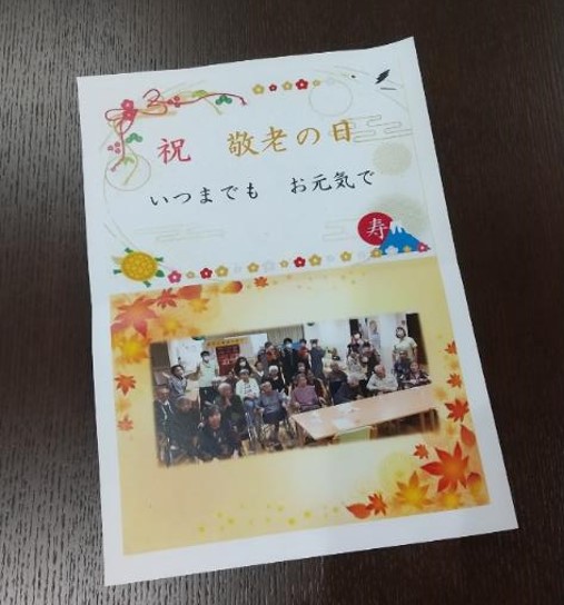 ご入居者の皆さま全員に、記念撮影でのお写真入り敬老祝いのカードをお配りさせて頂きました。