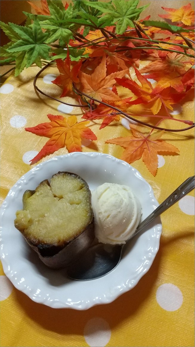 アイスと一緒に食べると喉の通りも良くなり、ひんやりアイスと焼き芋が絶妙な相性です。