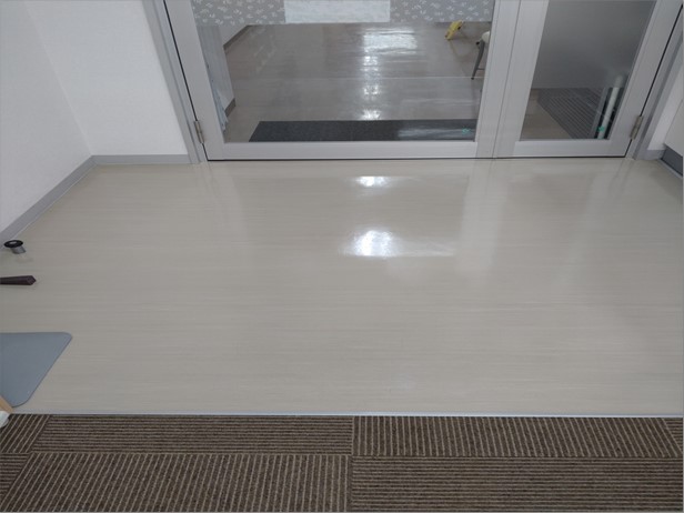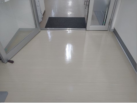 最期に、入口の『床の洗浄とワックス』。ピッカピカになりました!