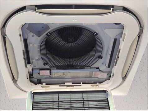多世代交流プラザ(まちかど健康空間)のために頑張ってくれたエアコンに、今年の夏の疲れと蓄積汚れを一掃するための分解洗浄です。