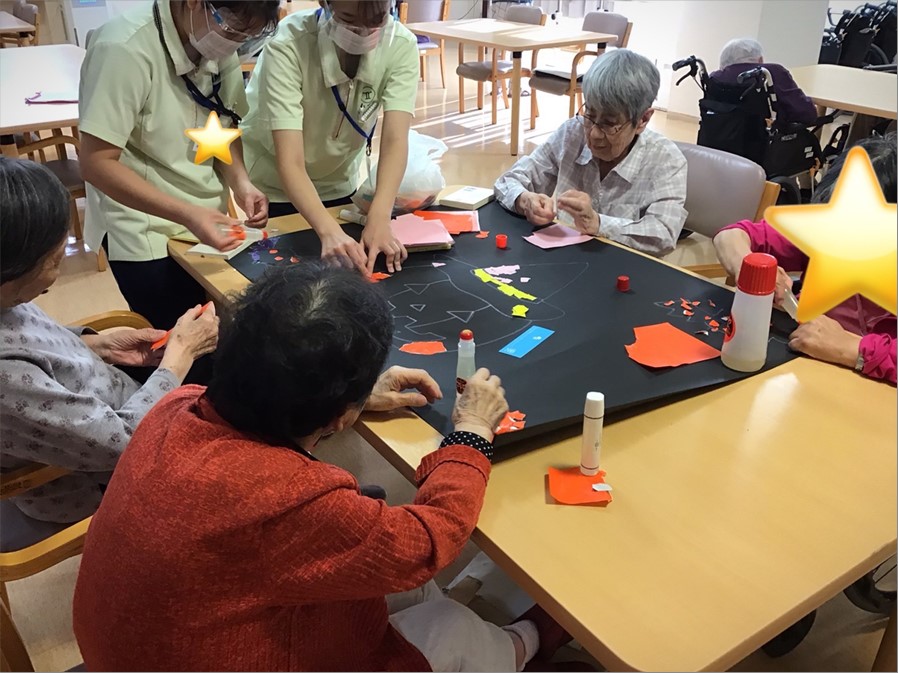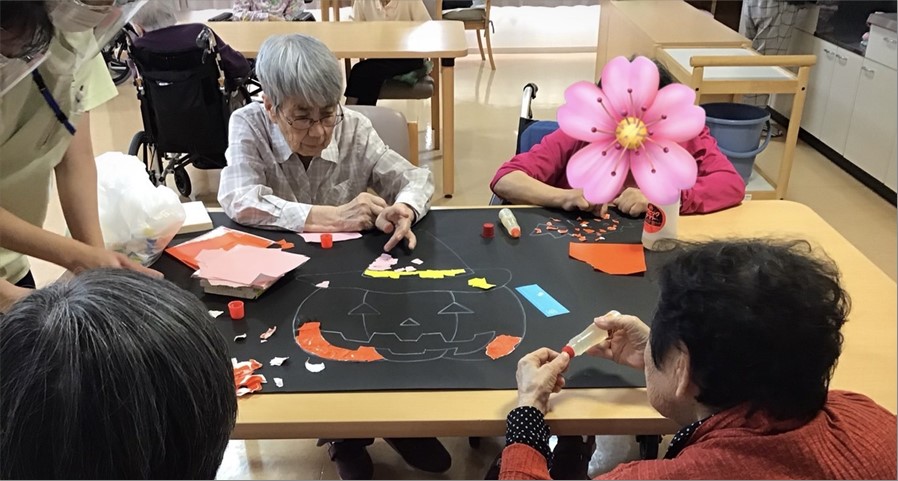毎月恒例のカレンダー10月【ハロウイン】の作成のご様子です。