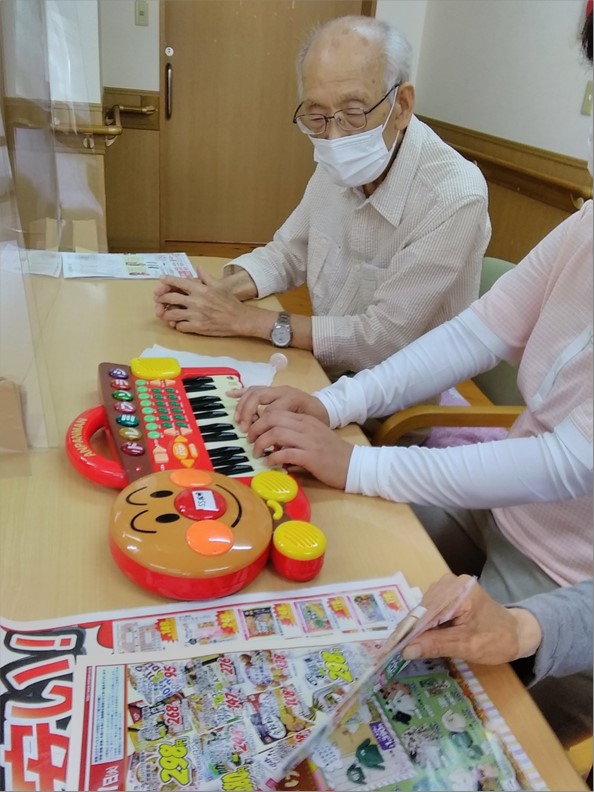 ご利用者様といっしょにピアノ演奏したり、またスタッフが演奏しているのを聞いて楽しそうに歌を口ずさんで歌われている様子が見られました。