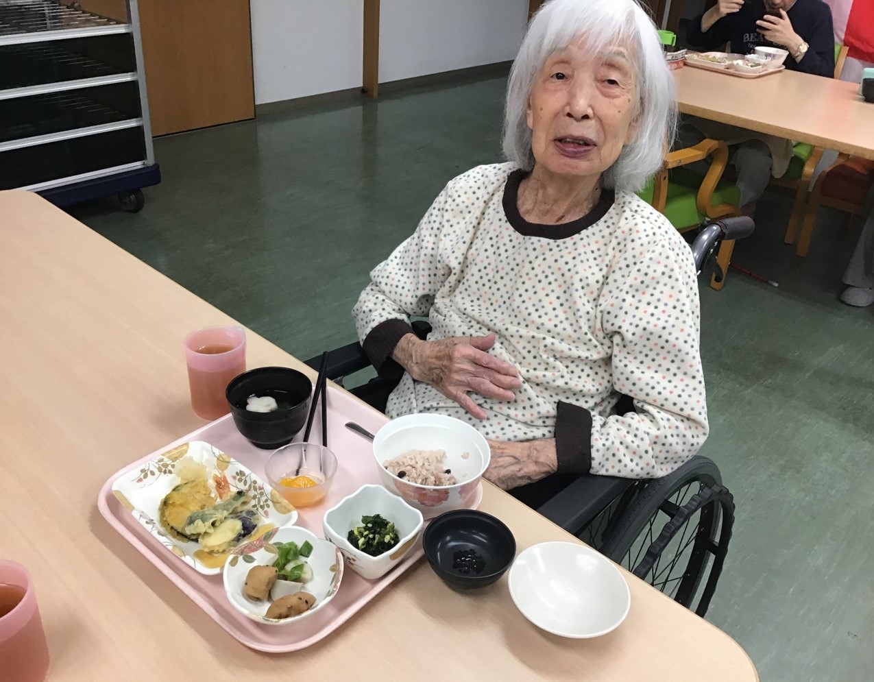 お昼は天麩羅やお赤飯など、敬老の日の特別メニューでした。