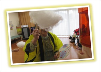 「懐かしいね~。甘くて美味しいわ~。」、「顔より大きいのができたわ。ありがとう。」などとわたあめを受け取っては、皆様美味しそうに頬張り、あっという間に平らげていました。