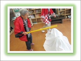 お次は縁日を彷彿とさせる『射的』や『輪投げ』、『水ヨーヨー釣り』や『スイカ割り』など、夏の季節は過ぎましたが、童心に帰って頂けるような昔懐かしいゲームに参加して頂きました。