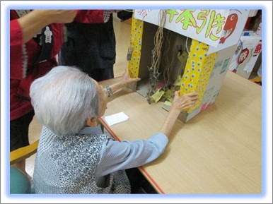 紐を引っ張っていました。景品が当たるとニッコリ(*^^)v