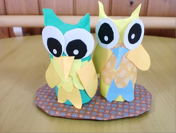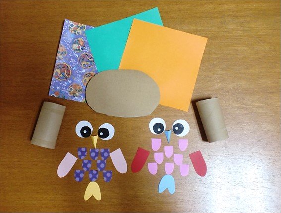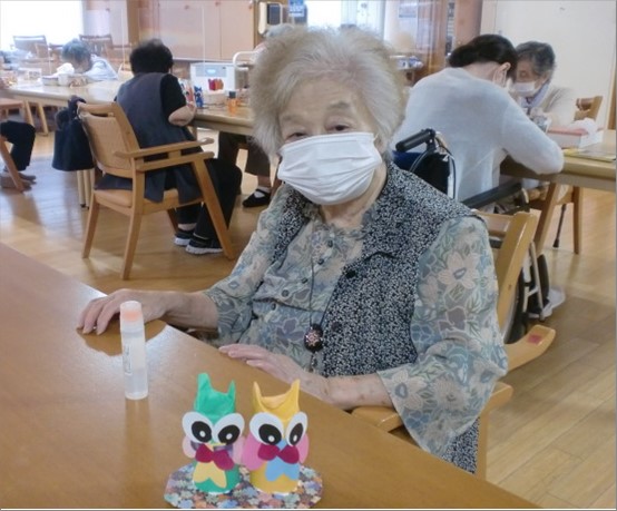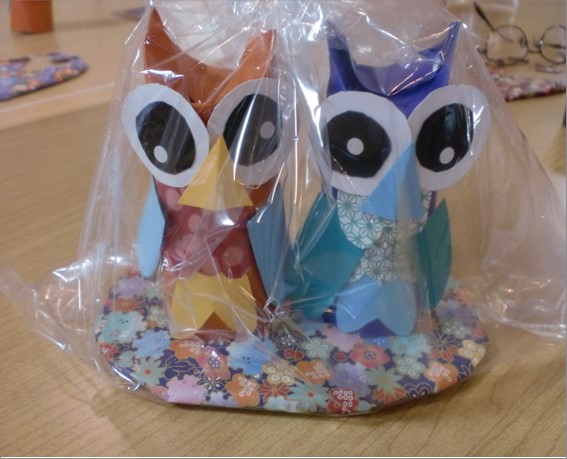 完成後は近くの方と模様や色の違うフクロウの披露会、「あ~そこに貼れば良かった~」と振り返りの声もあり、皆様の創作意欲も益々高くなっているように思います。
