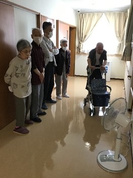 この度の訓練は、入居者の皆様には事前連絡なしに、突然の館内放送で訓練実施の旨をお伝えしました。