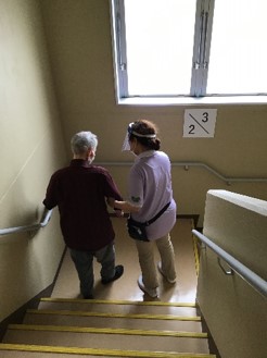 建物1階の厨房から出火したという想定の下、実施要領書に従い、火災発生箇所の確認・消防署への通報・入居者様の避難誘導など、一つ一つ手順を確認しました。