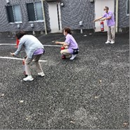 避難訓練の後は消火訓練になります。毎回全員参加でお願いしているので、今回も全員外へ移動です。