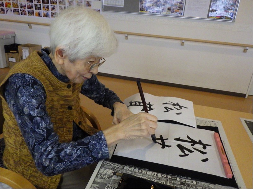 書道と調理のレクリエーションは恒例となっています。