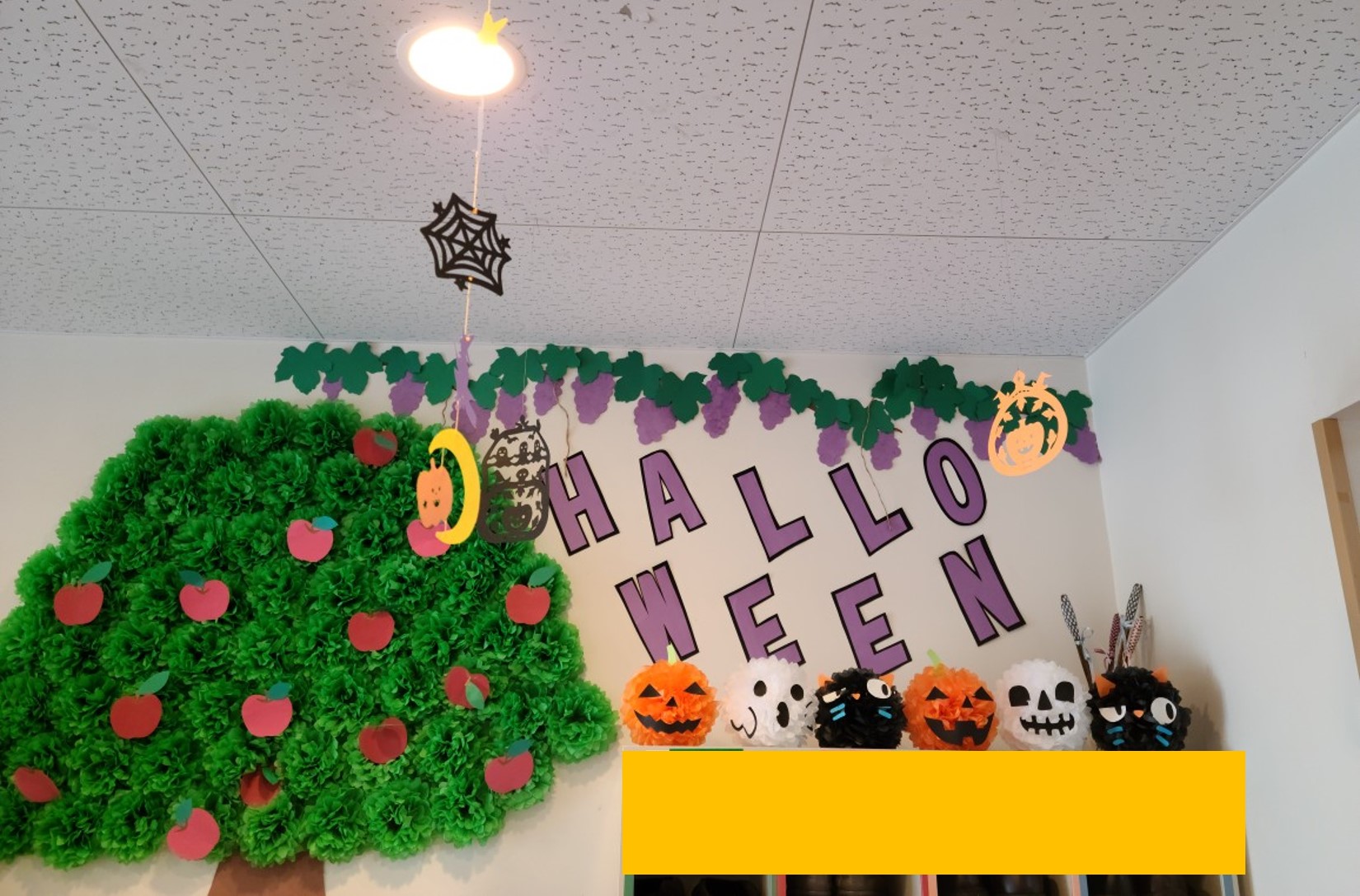 玄関には、ハロウィン定番の飾り、オバケの南瓜、黒猫、オバケたちが皆様をお出迎えします。