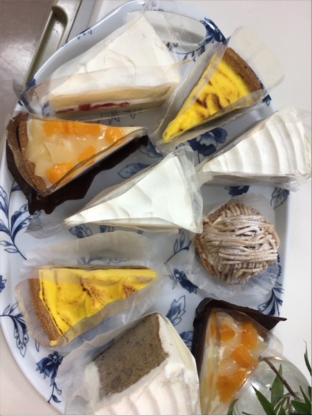 ご入居者様には、美味しそうなケーキをバイキングで選んでいただきました。