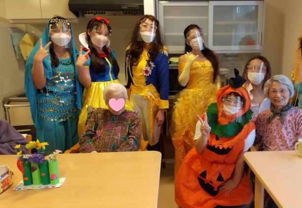 女性職員が男性に仮装したり、ご入居者様も職員もとても楽しそうでした。