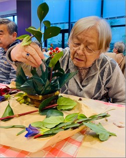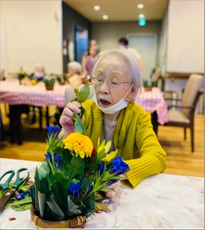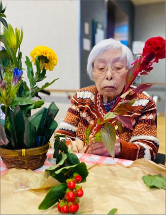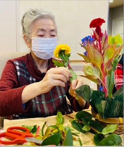 先日フラワーアレンジメントを行いました! 皆様、夢中になって花を生けられ、出来上がった作品にすごくいい笑顔をしてくれています。