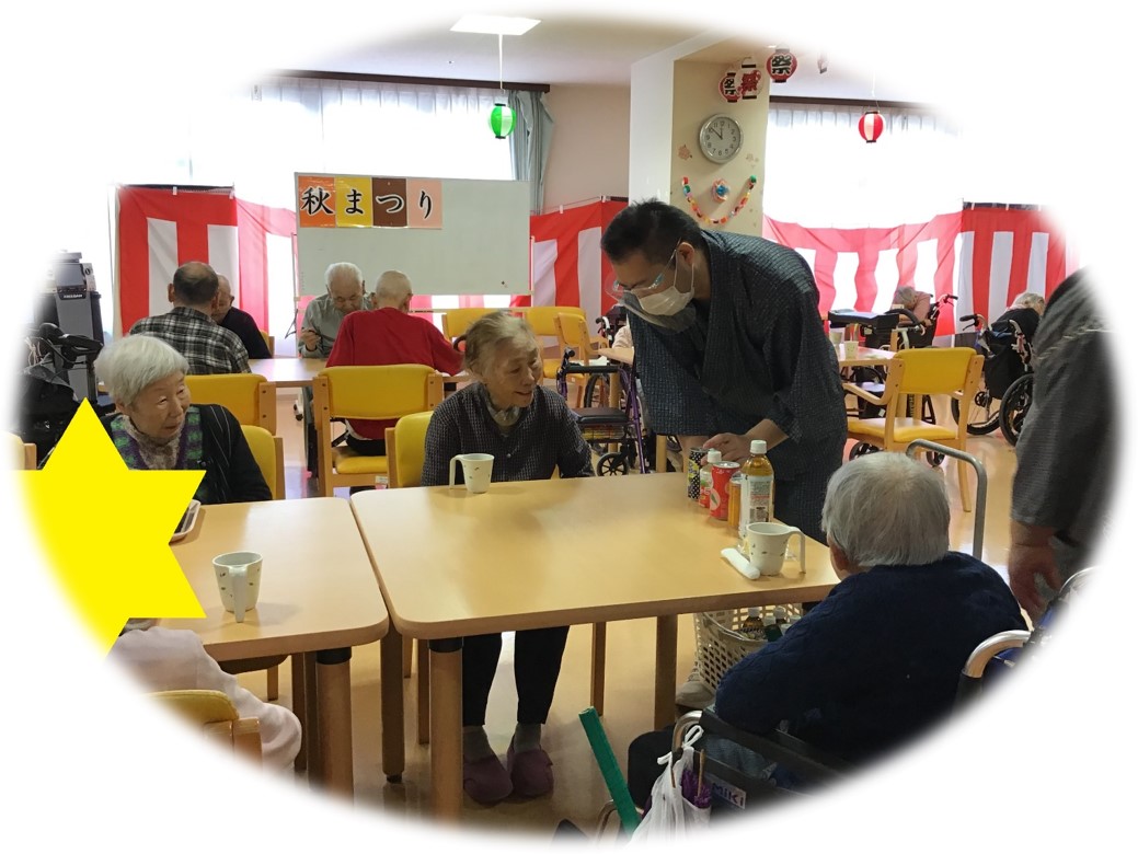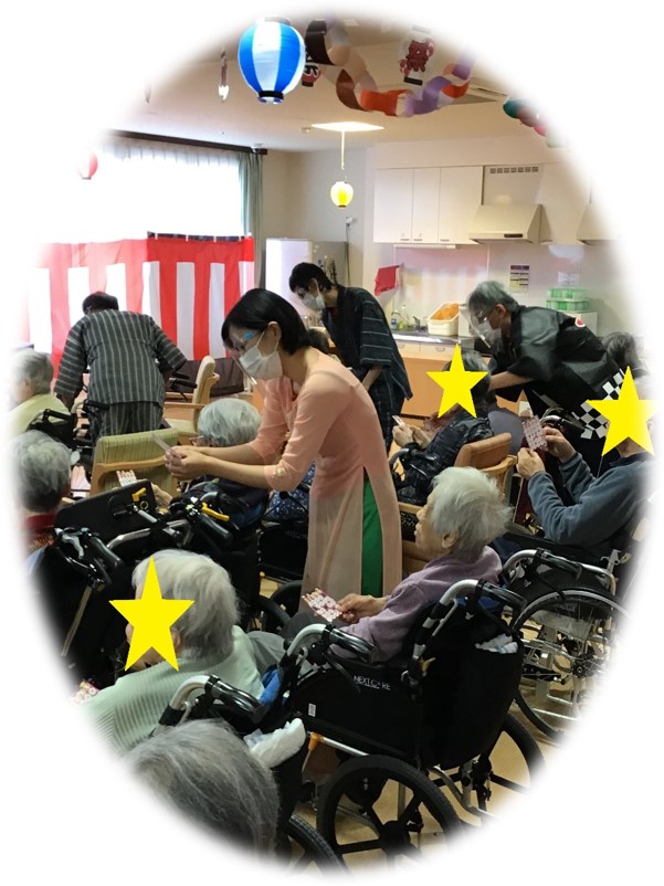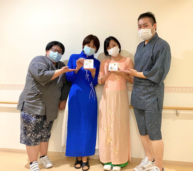 秋祭り開催です。職員は甚平・浴衣・アオザイ(ベトナム衣装)を着ております。
