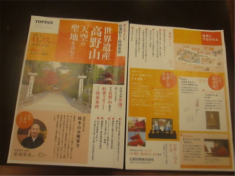 11月17日(木)オンラインで高野山の紅葉狩りと特別参拝が行われました。