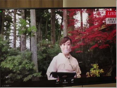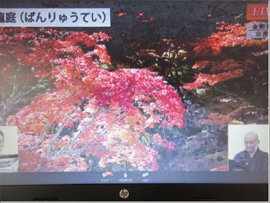 「きれいな紅葉ね」「旅行で行った事がある。懐かしいわね」などなど、オンラインではありますが、すっかり色づいた紅葉を楽しんでいらっしゃいました。
