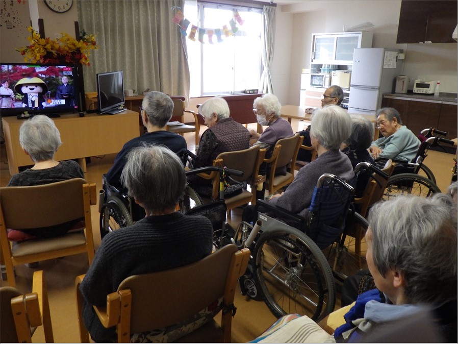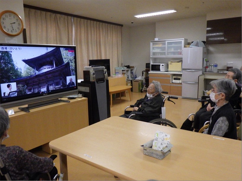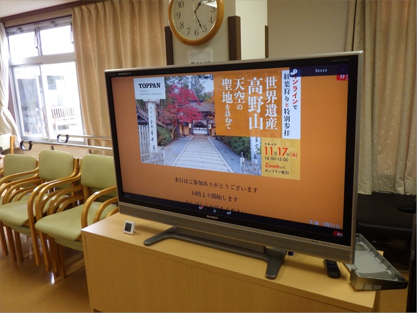 11月17日(木)『ル・レーヴ羽生古島』ではラウンジのTV前にお集まりいただき、オンラインイベントとして「高野山金剛峯寺の特別参拝と紅葉狩り」を行いました。