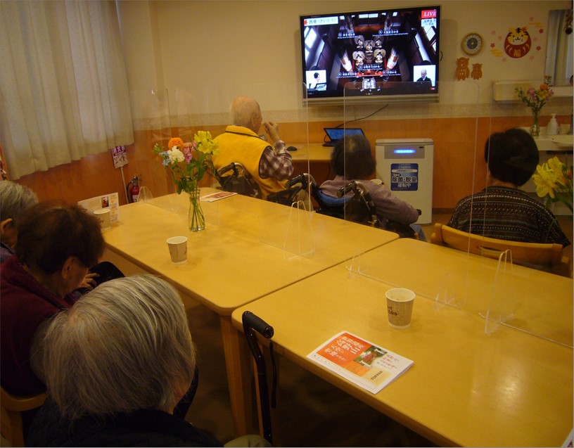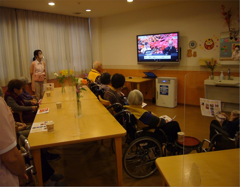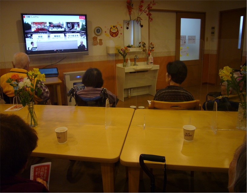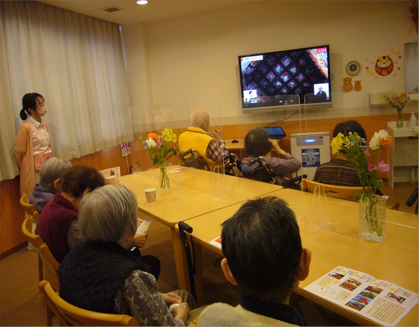 11月17日の午後、住宅型有料老人ホーム『ハートフルヴィラ出来島』では、オンライン生中継による「世界遺産高野山巡りと紅葉狩り」のイベントをおこないました。