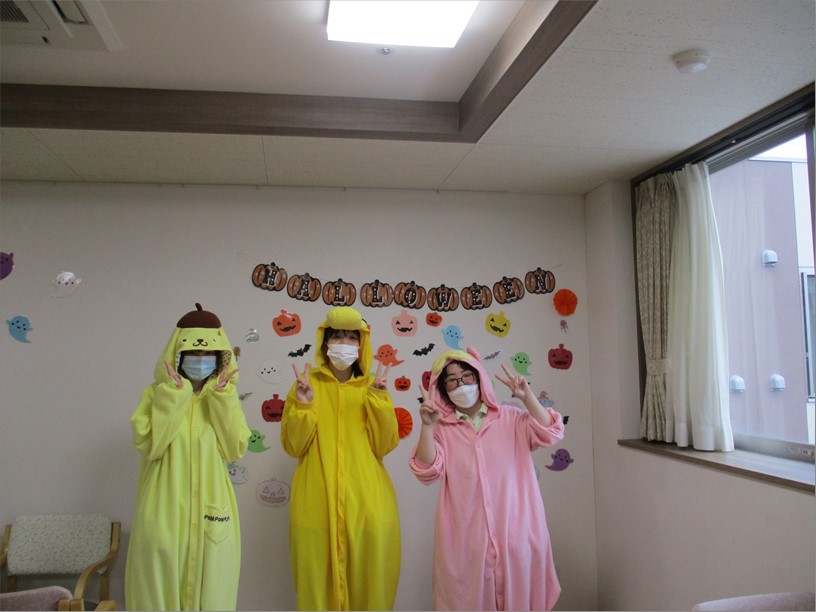 職員も仮装してパーティーに参加しました。キャラクターの他にも魔女や悪魔も!