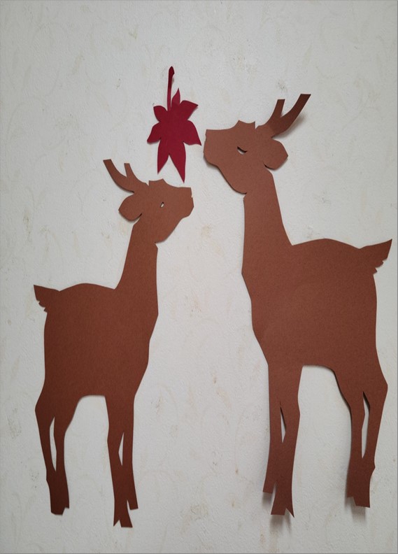 また、ラウンジには、壁一面に真っ赤な紅葉の木、そしてそこにはたくさんの鹿が、紅葉を楽しんでいるかのような飾り付けになっております。
