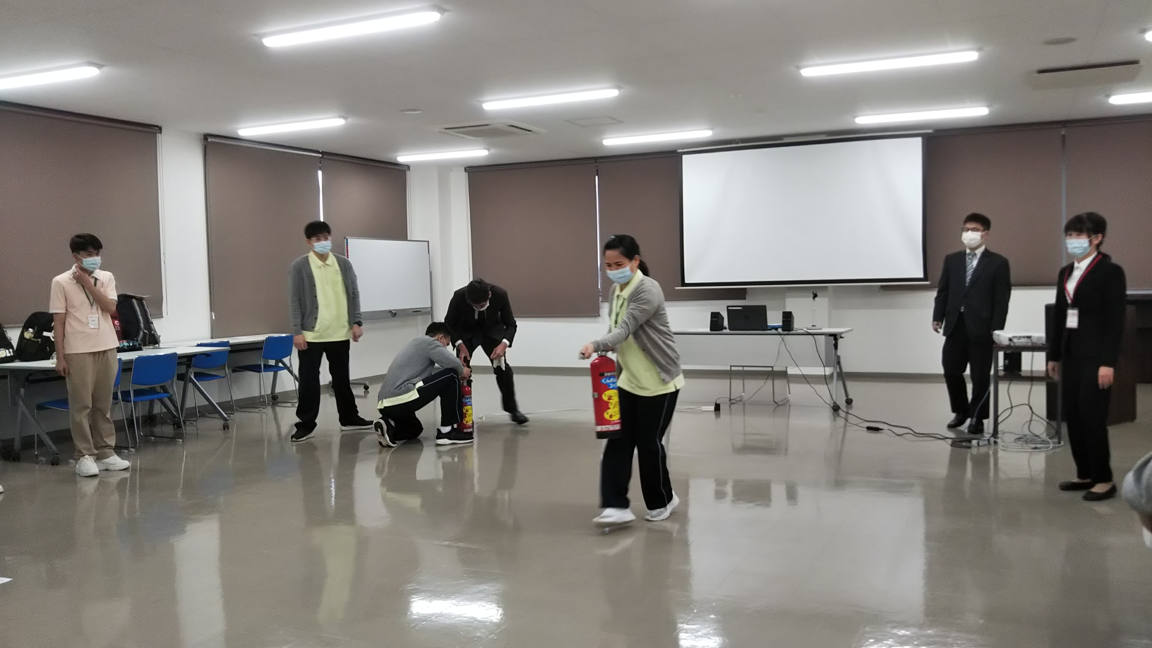 消火器訓練も積極的に参加。接遇マナーを復習!!