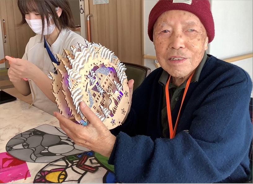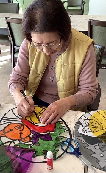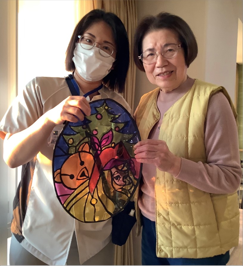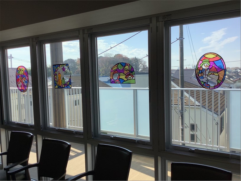 『ローベル上井草』では、クリスマスの飾りつけとして皆様とステンドグラス風アートを作成致しました!