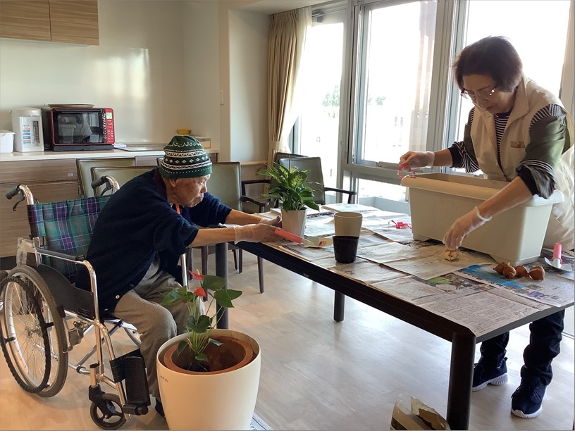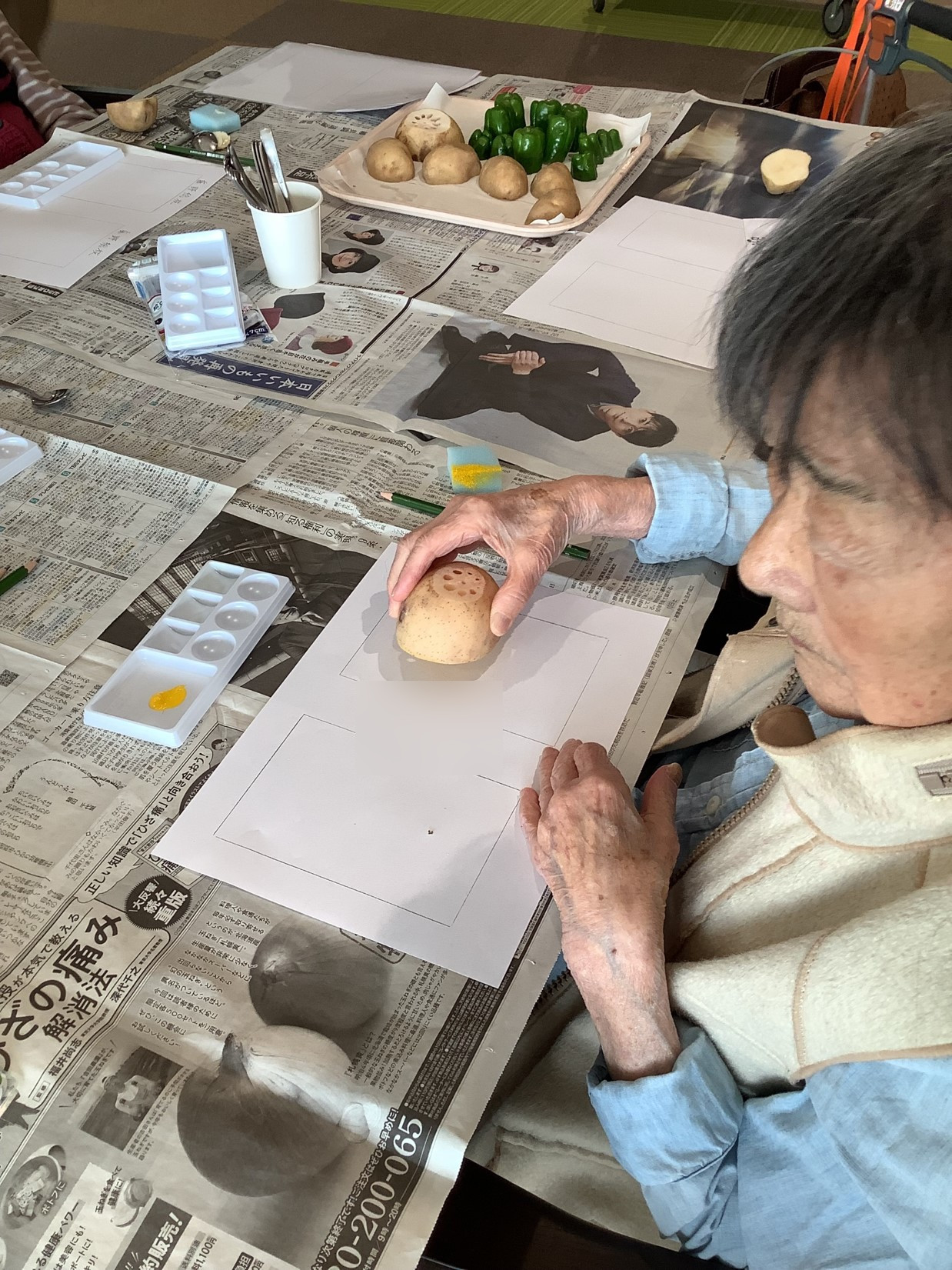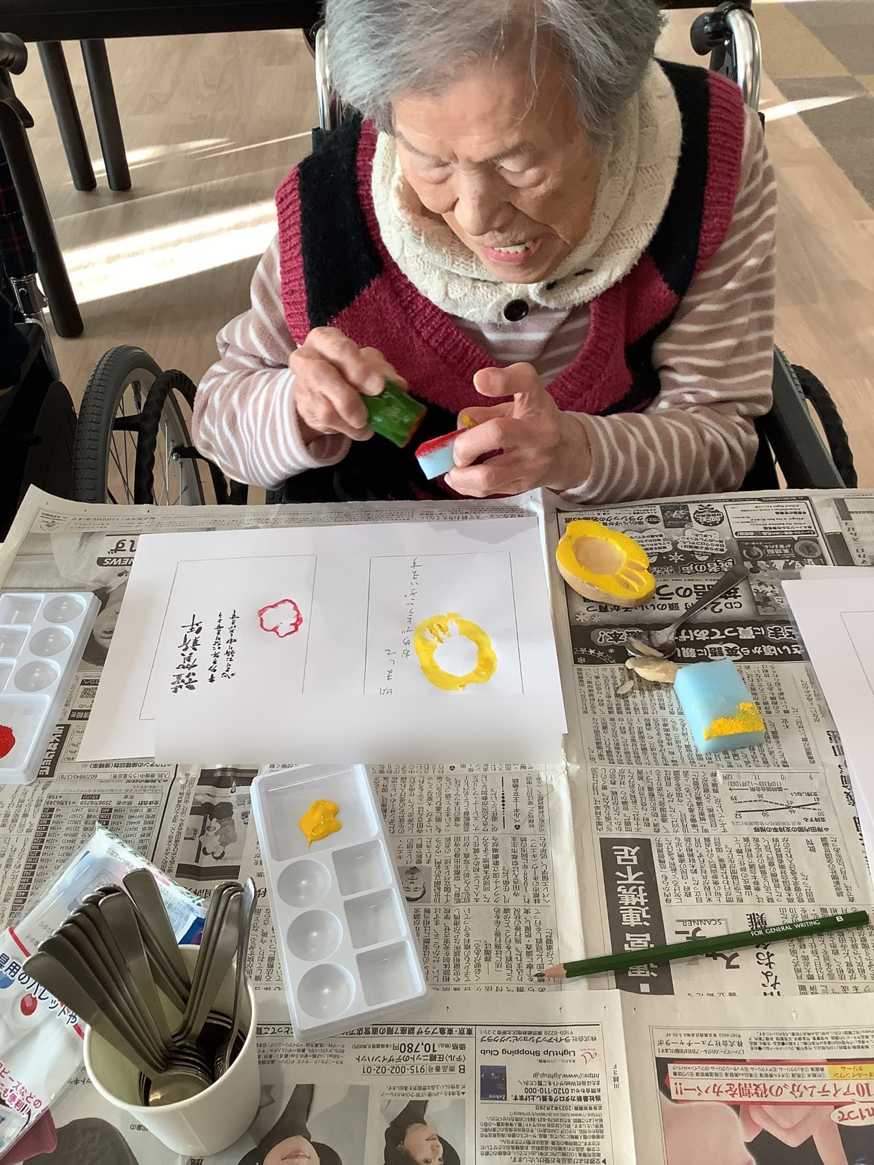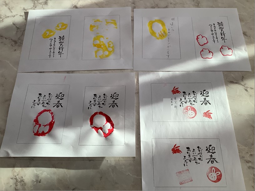 『ローベル上井草』です。今回の園芸クラブは「お野菜スタンプde年賀状」作りを行いました。