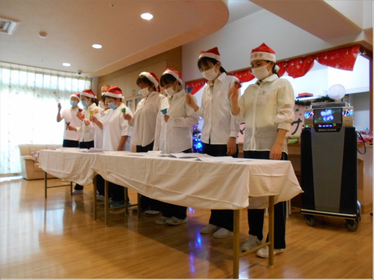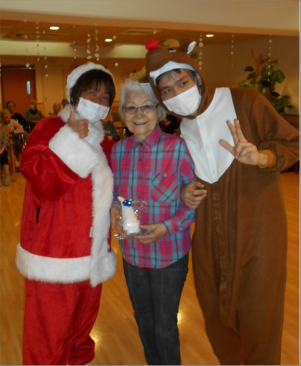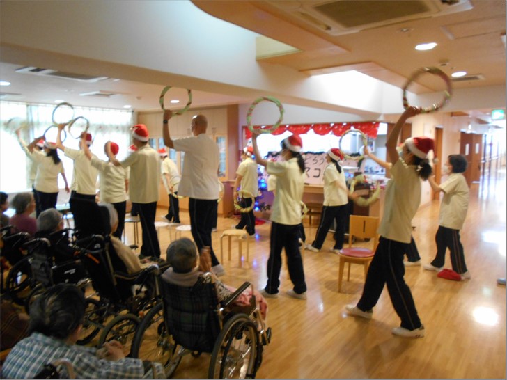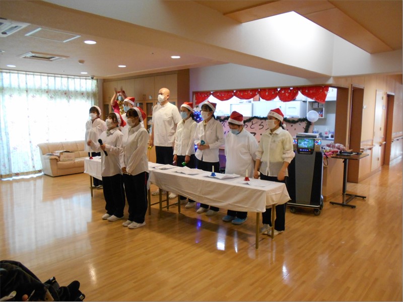 職員が日々練習に励んだ「ハンドベル」と「ラインダンス」!! サンタからのプレゼントもあり、笑いあり、感動の涙ありの素晴らしいクリスマス会となりました。