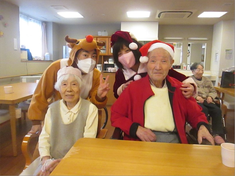 12月24日クリスマス会を行いました。ベトナム実習生が作ってくれたペアの雪だるまも見守っています。