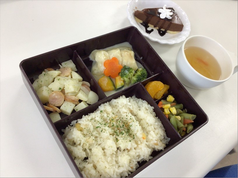 バースデーメニューは、【ロールキャベツクリーム煮・カツの玉子とじ】です🍚