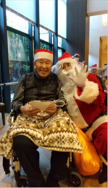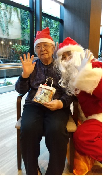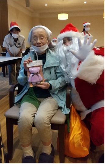 サンタから皆様全員にハンドタオルをプレゼントさせていただき「あら、かわいい」と喜んでいただけました。