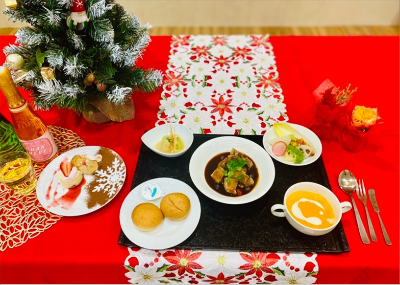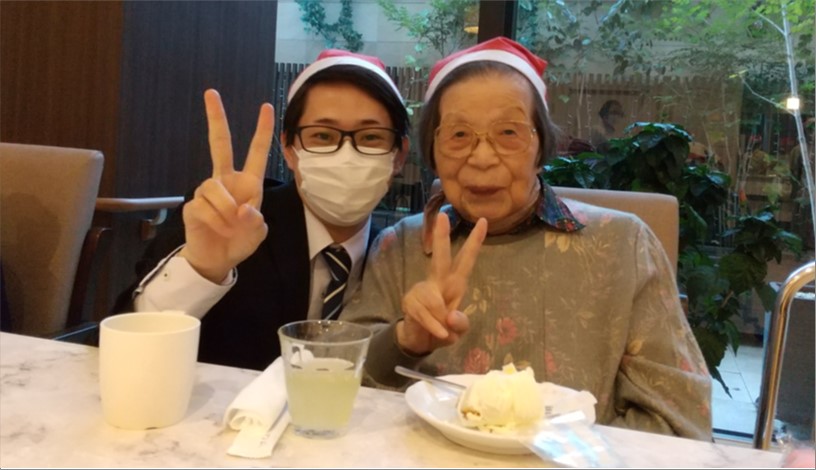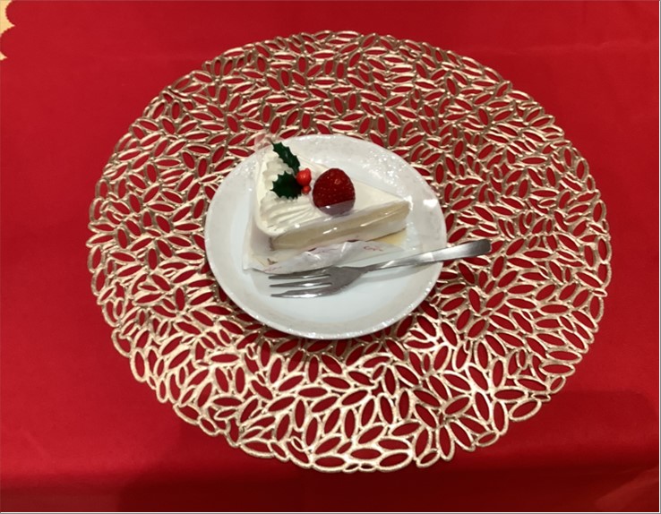 クリスマス会の最後にはショートケーキを「こんなにたくさん食べられるかしら?お昼もあんなにあったのに」と笑顔でお話しになり「おいしかったわ。でも、食べ過ぎたわ」とニコニコと話されていました。