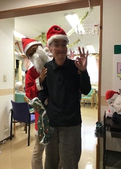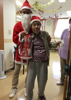 ビンゴ大会の終了後、サンタクロースよりクリスマスプレゼントが渡されました。