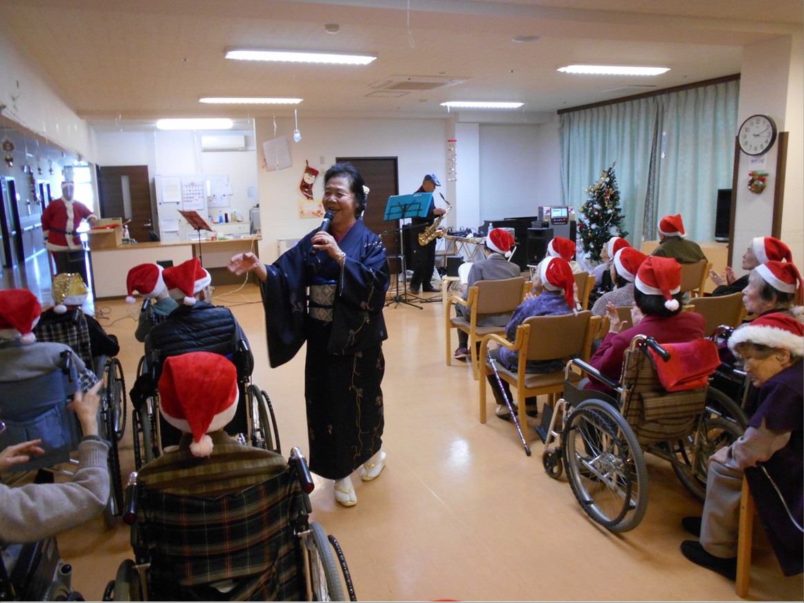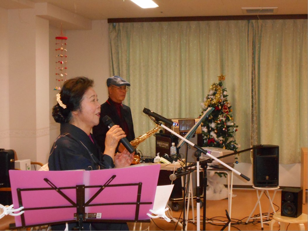 12月は地域ボランティアの『ドリーム』様にお越しいただいて、サックスの生演奏に加え、懐かしの歌と踊りを披露して下さいました。